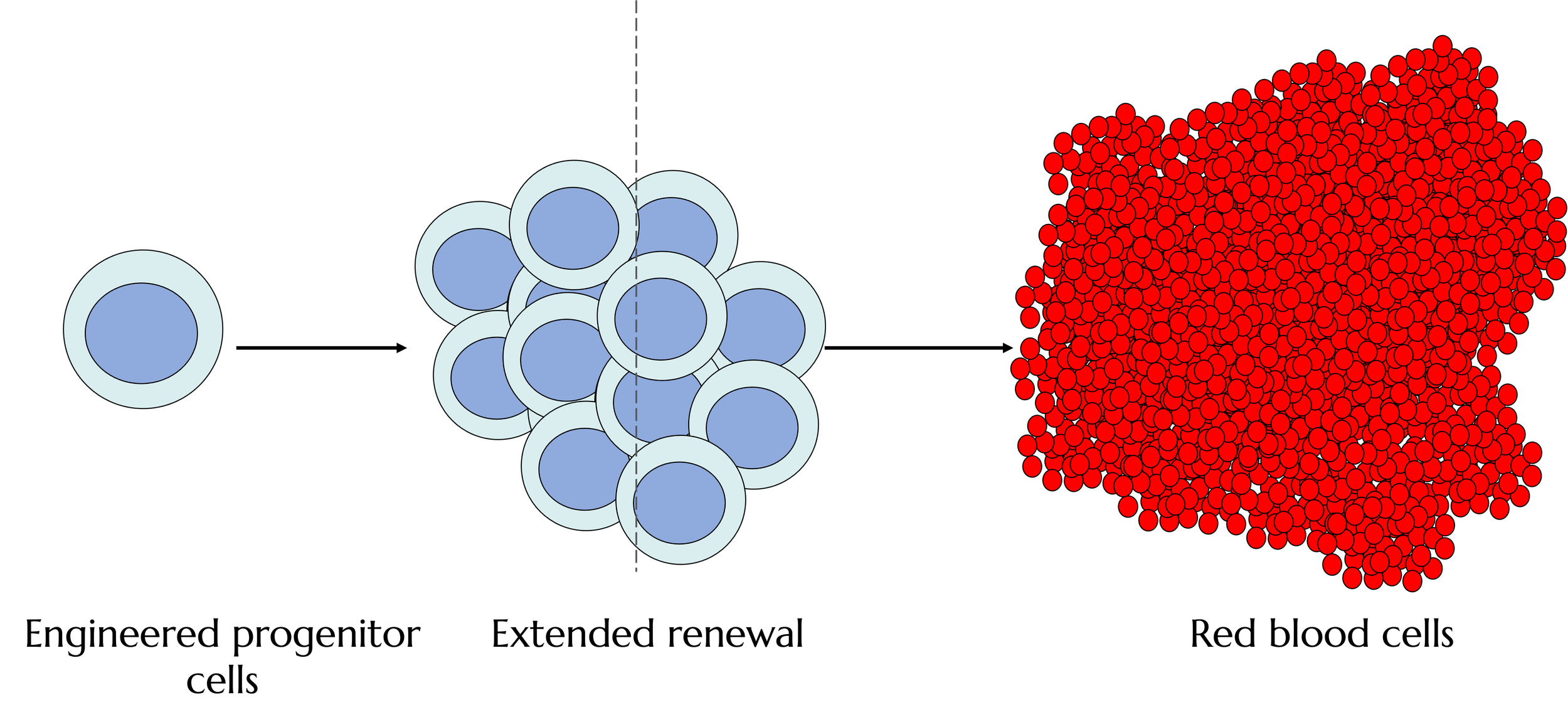 An engineered inducible, immortalized erythroid progenitor platform designed to provide a renewable cell source for lab-grown human red blood cells for transfusion applications and disease modeling.